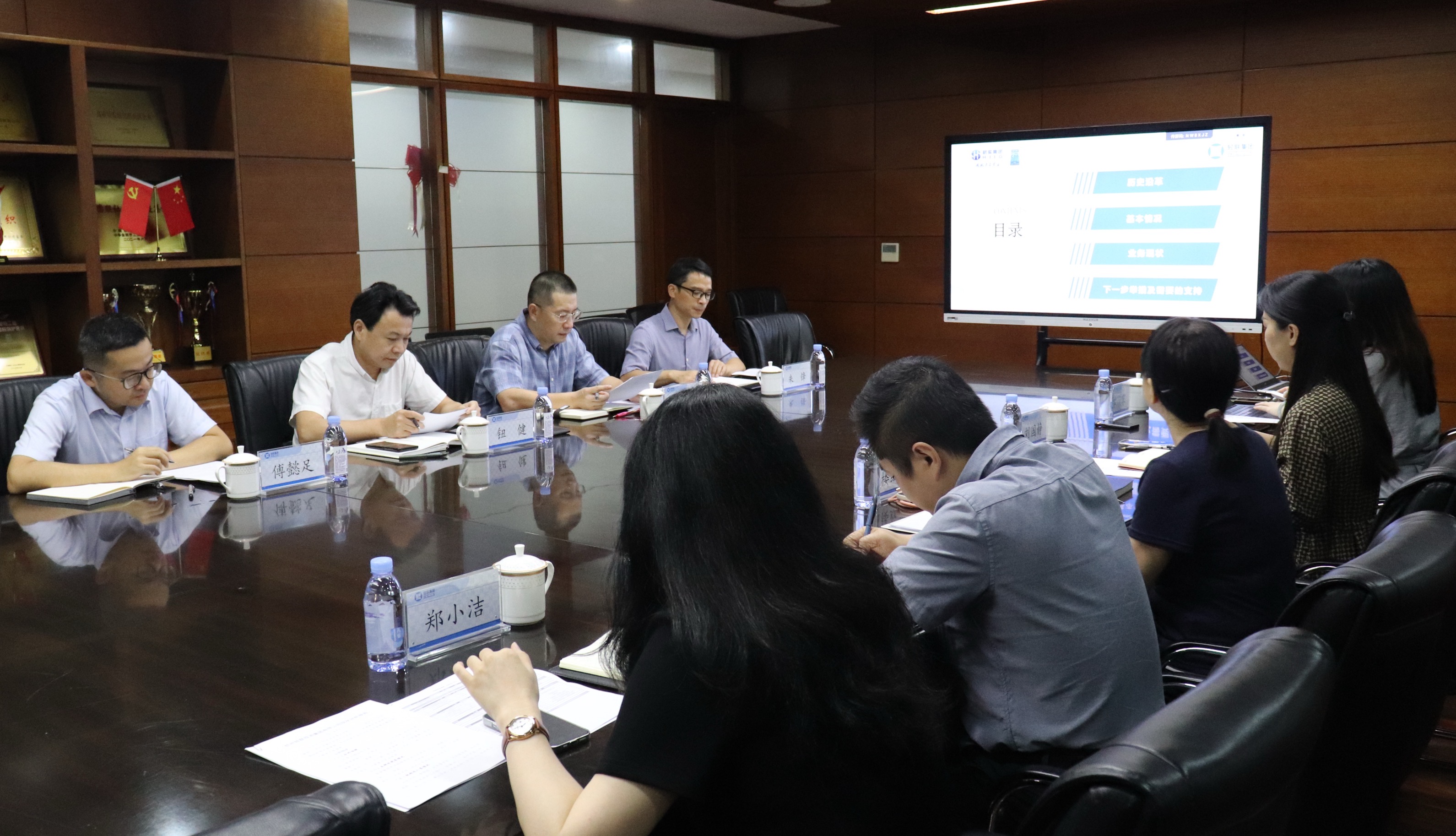 轻联集团党支部书记、董事长楼红娟全面汇报轻联集团当前公司现状和转型发展情况,并重点介绍产业投资、智慧团餐及工艺美术三大重点板块工作进展成效,并就下一步工作做简要介绍。